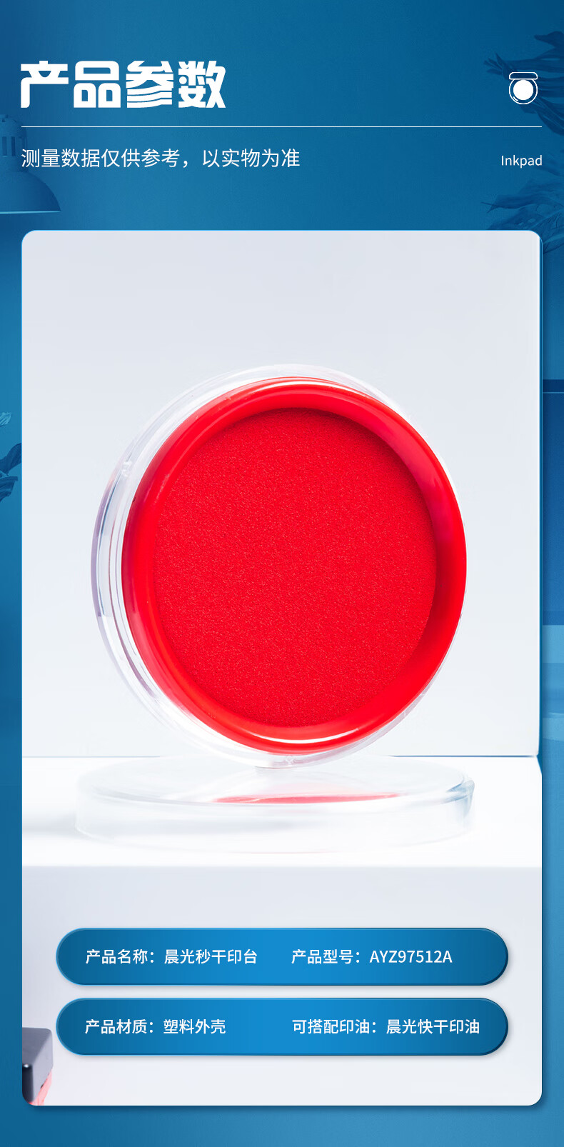 商品名稱:晨光AYZ97512 快干印臺(tái) φ80mm透明圓形財(cái)務(wù)快干印臺(tái)印泥 紅色單個(gè)裝
