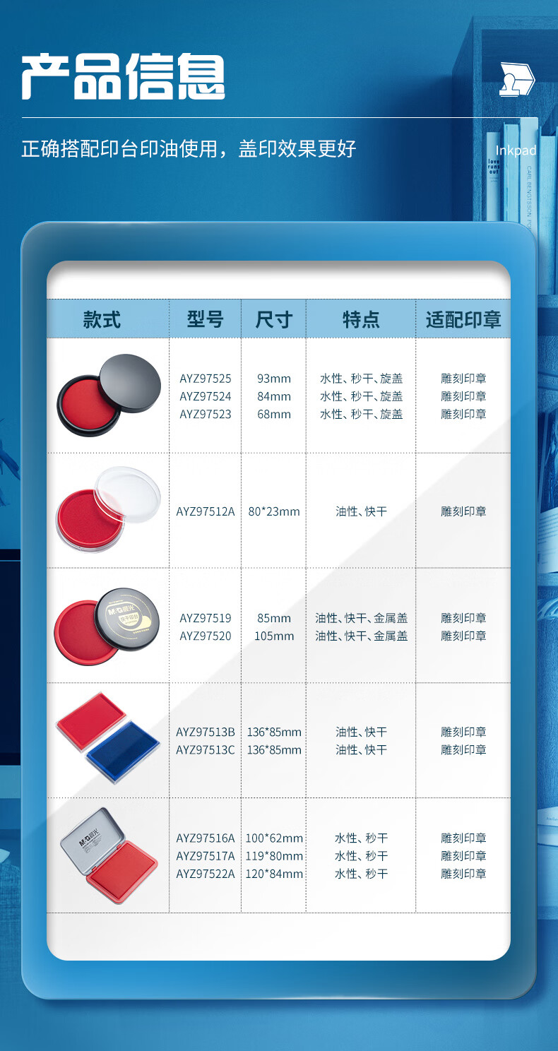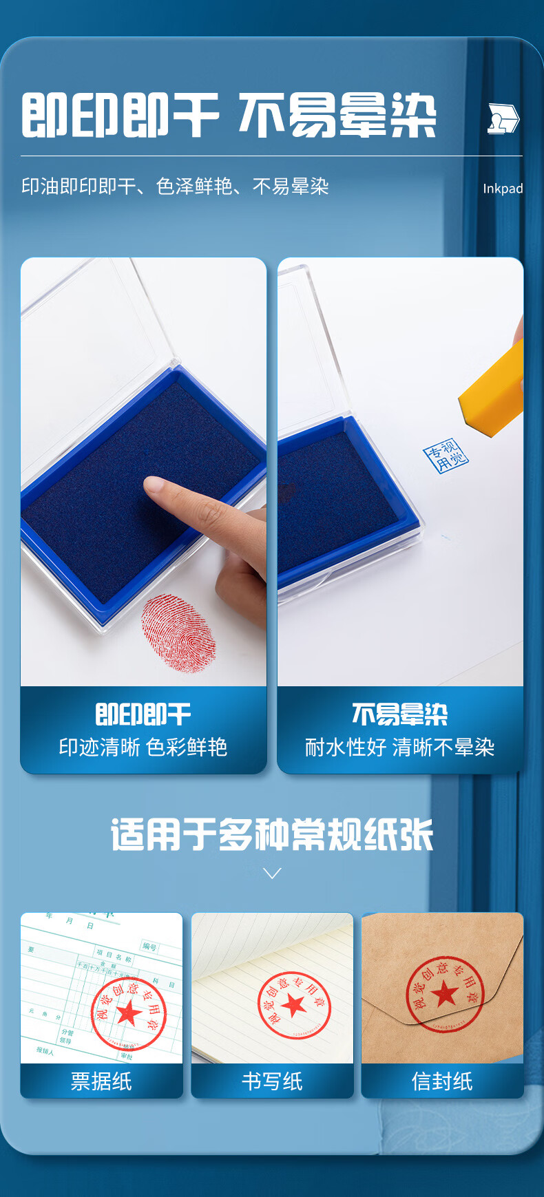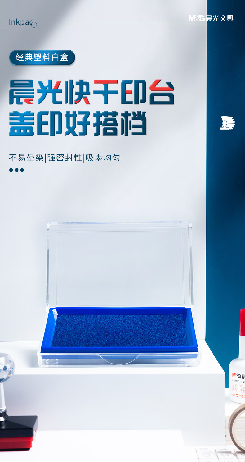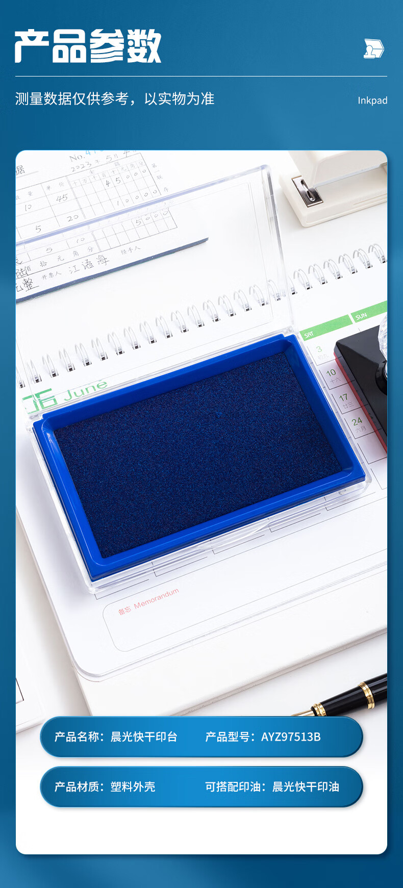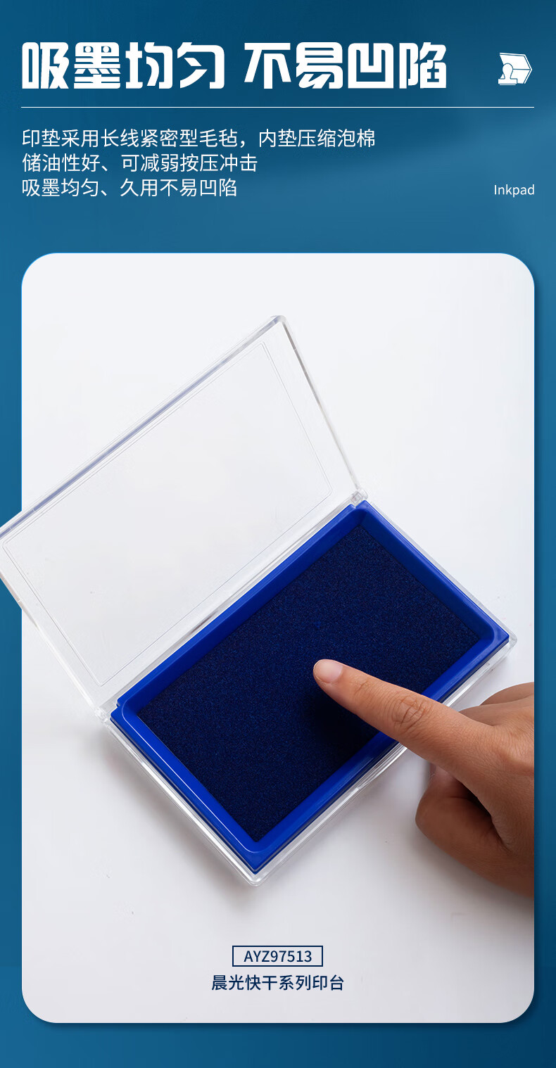 商品名稱:晨光AYZ97513 快干印臺(tái) 137*88mm透明外殼方形快干印臺(tái)印泥 藍(lán)色單個(gè)裝