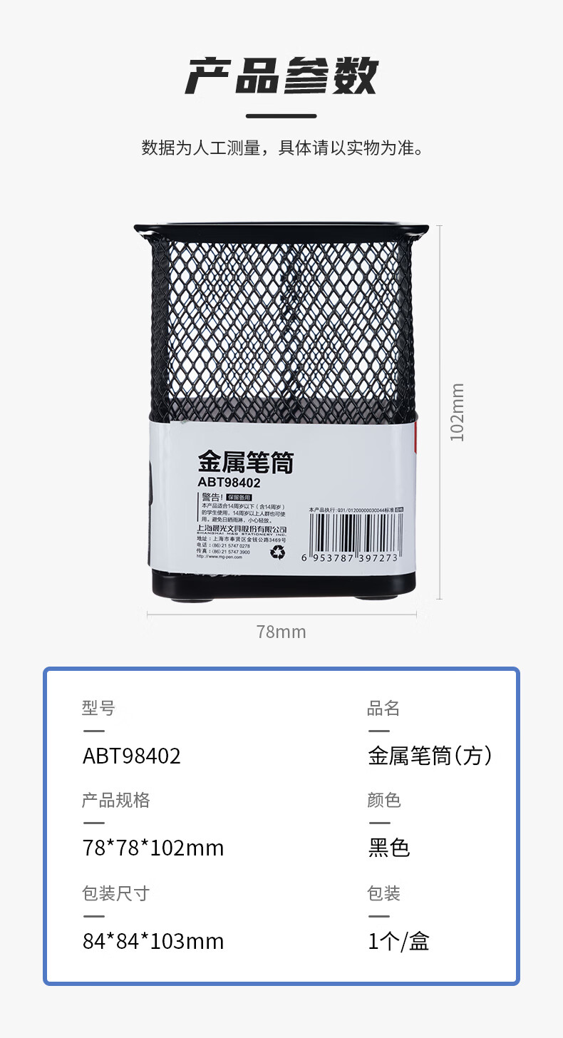 商品名稱:晨光金屬時(shí)尚網(wǎng)格方形筆筒 桌面收納盒 黑色 單個(gè)裝ABT98402