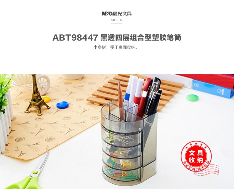 商品名稱:晨光透明四層時(shí)尚筆筒 多功能桌面收納盒 黑色 單個(gè)裝ABT98447