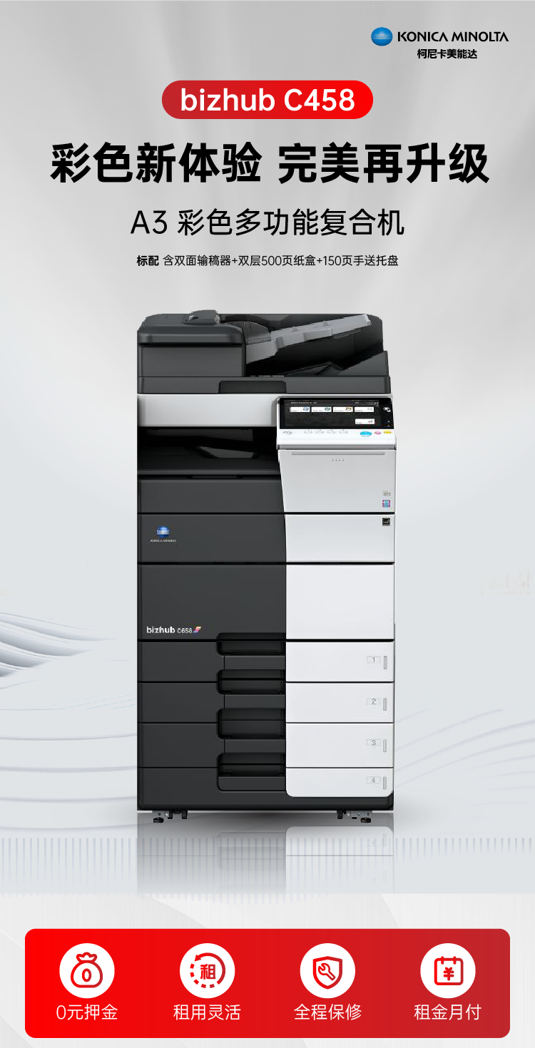 商品名稱:茂名湛江柯尼卡美能達(dá)C458彩色復(fù)印機租賃 A3激光打印機大型一體機出租