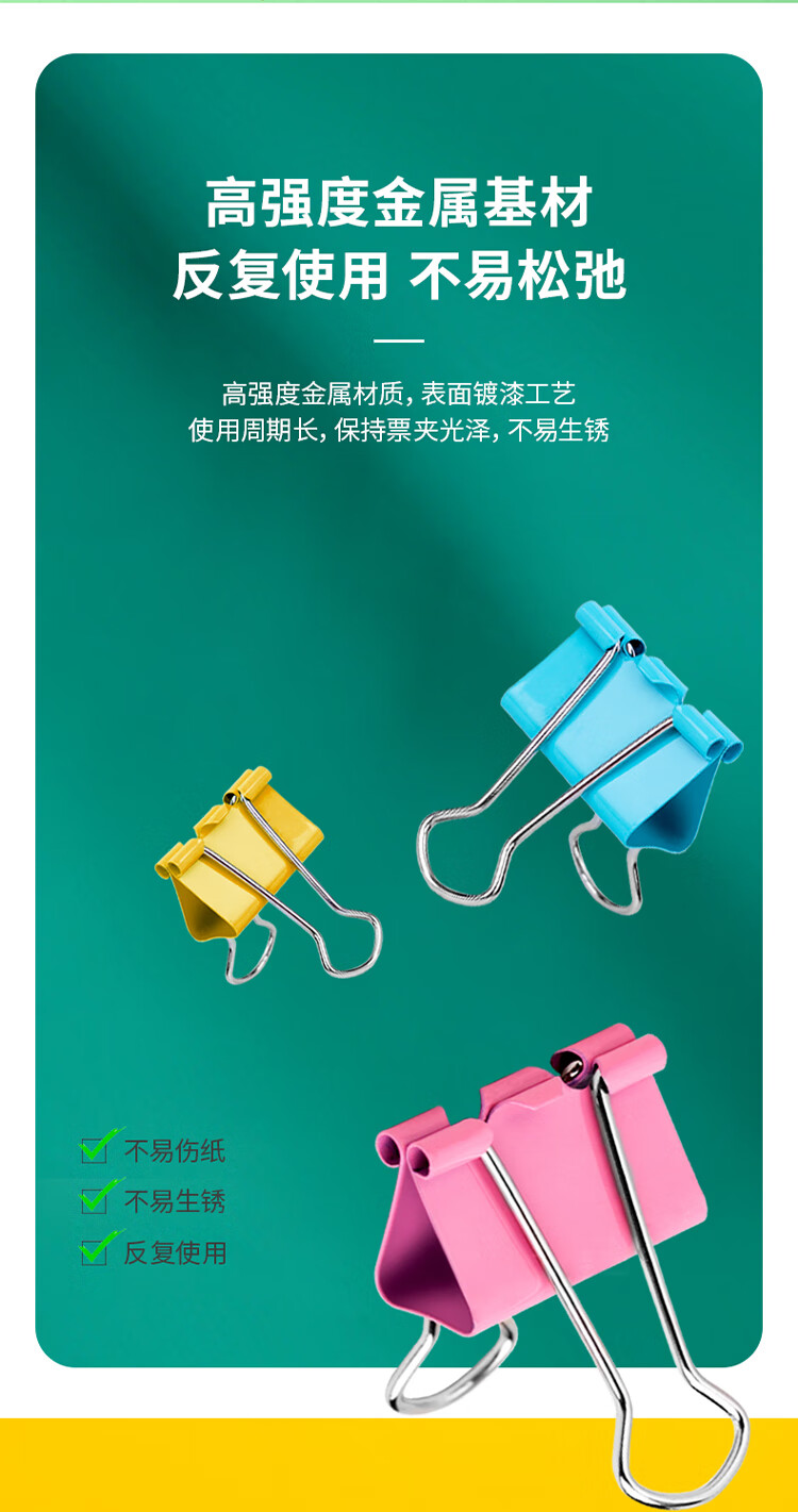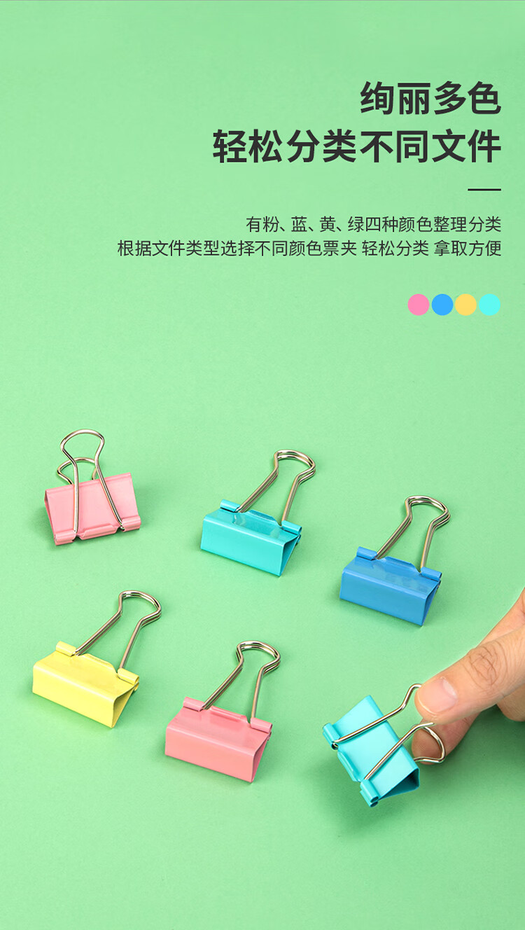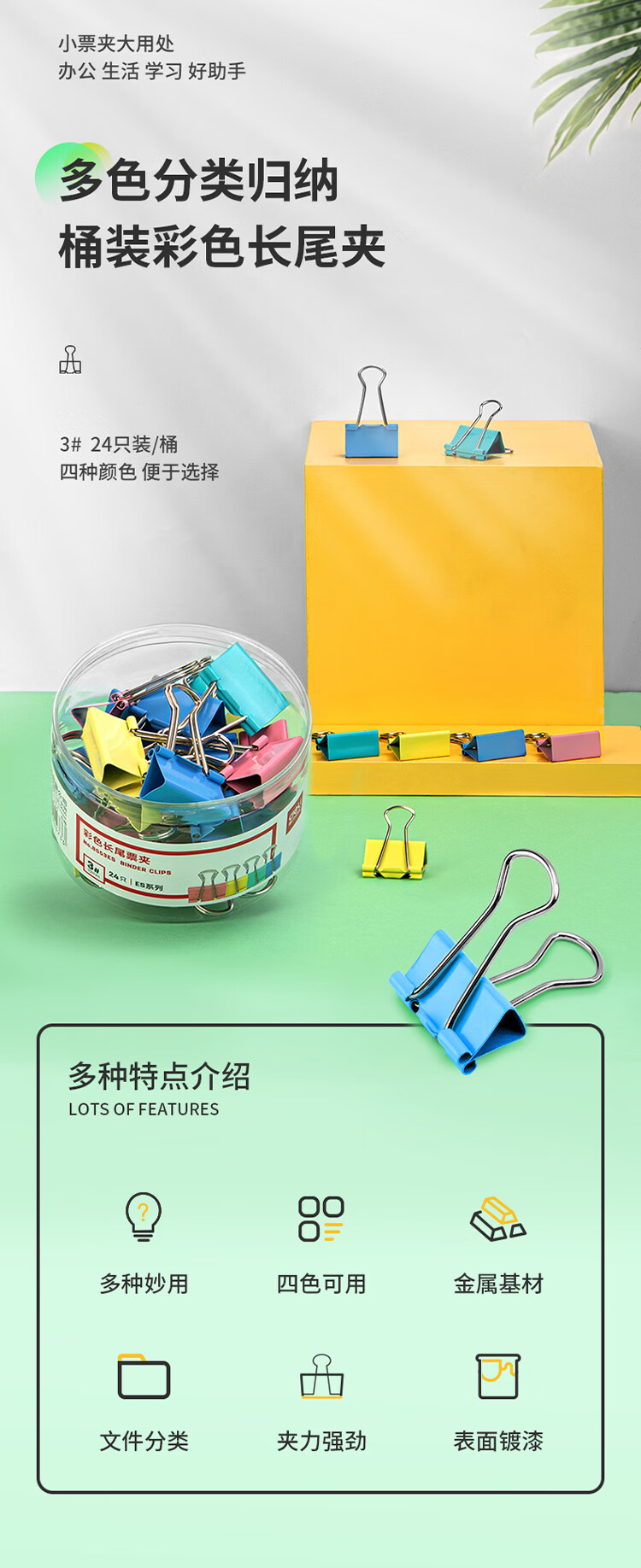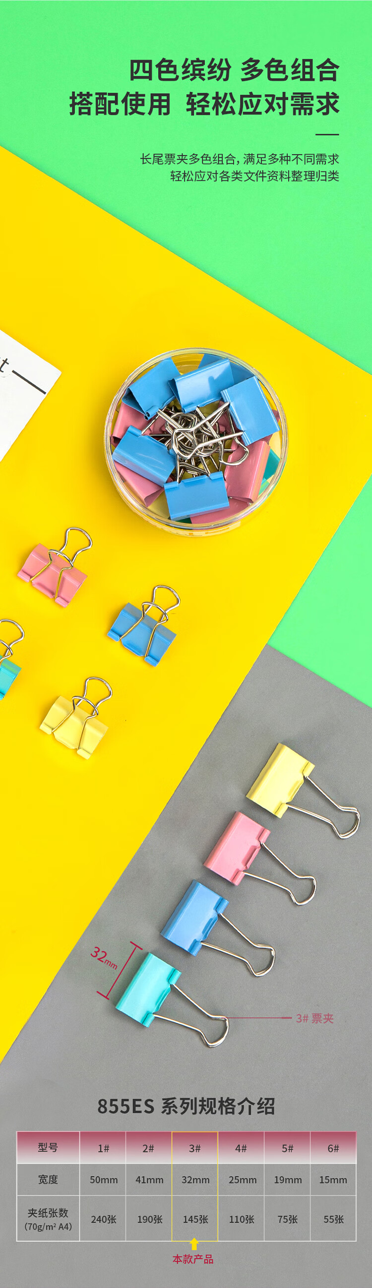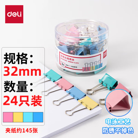 商品名稱: 得力8553ES 彩色長尾夾 3#32mm中號金屬票夾燕尾夾票據文件夾子 辦公用品 24只/筒