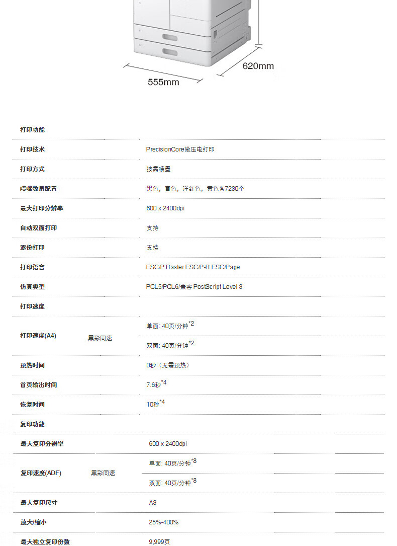商品名稱:愛普生打印機(jī)租賃 茂名出租彩色企業(yè)級墨倉式陣列復(fù)合機(jī)(月)