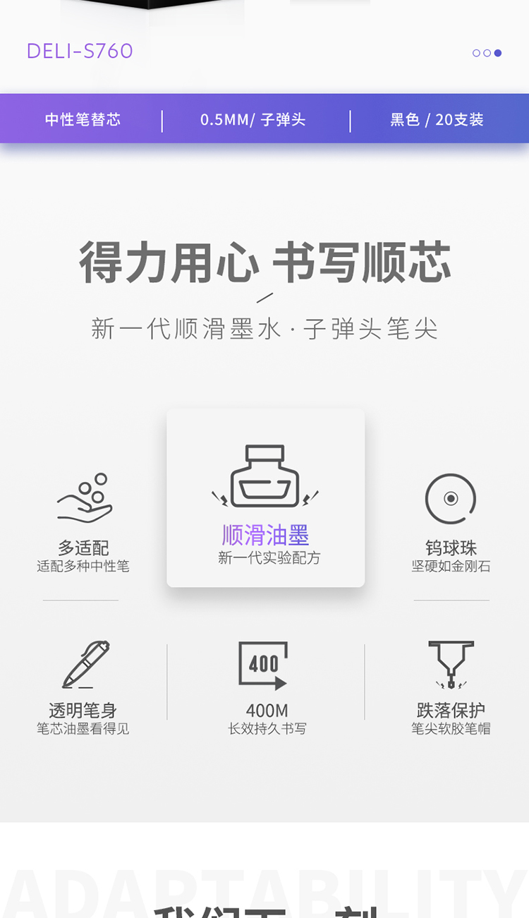商品名稱:得力S760 中性筆筆芯 辦公書寫筆子彈頭0.5mm水筆芯 20支/盒