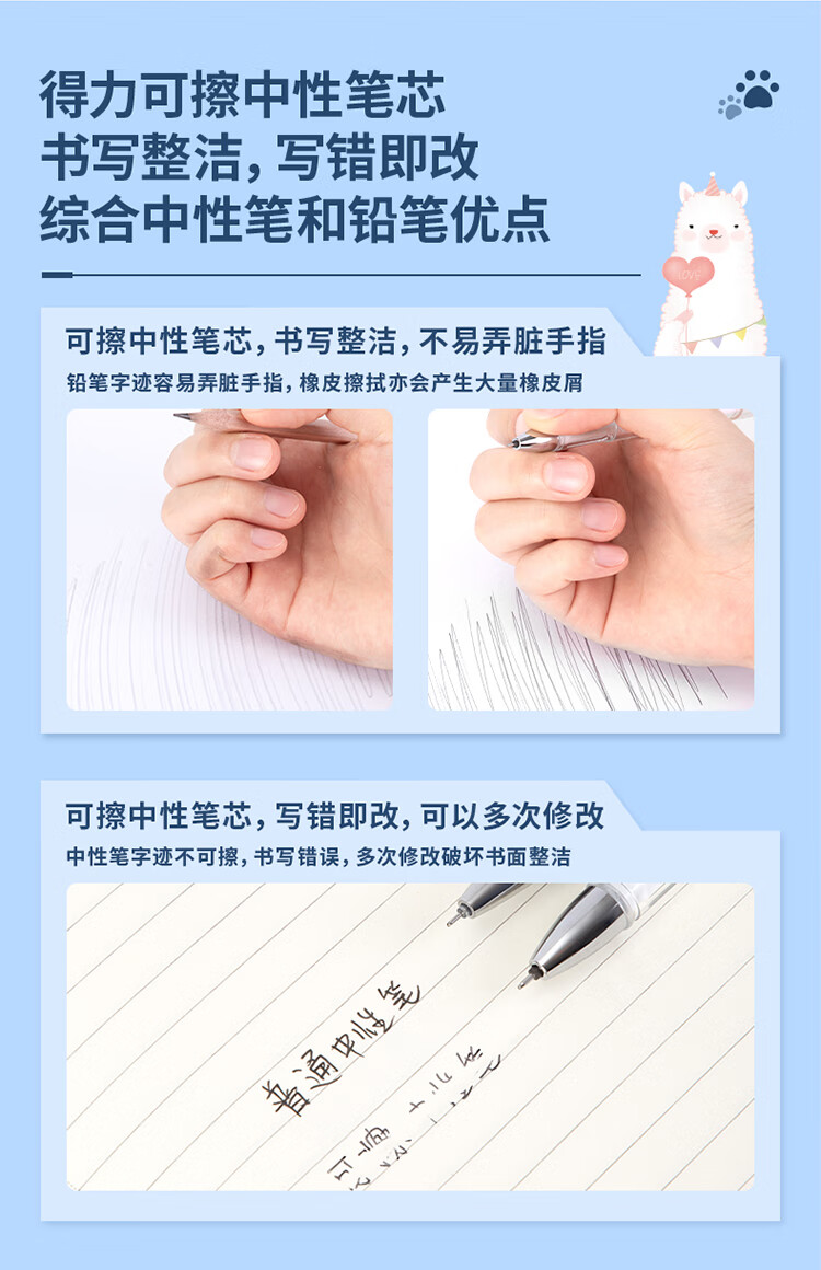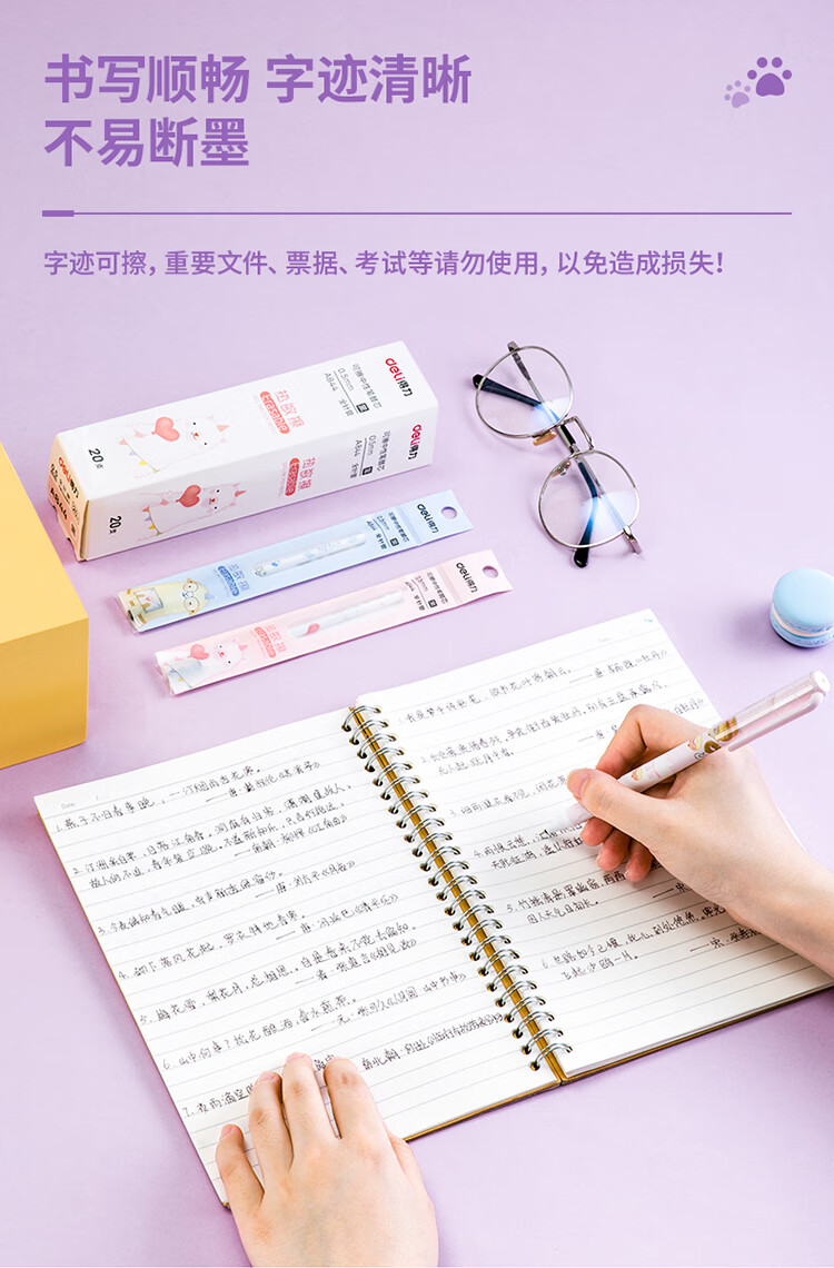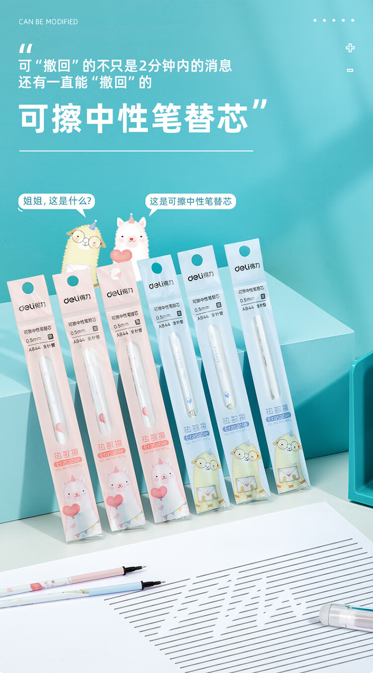 商品名稱:得力A844 熱可擦筆芯 0.5mm全針管中性筆水筆簽字筆替芯 黑色 20支/盒
