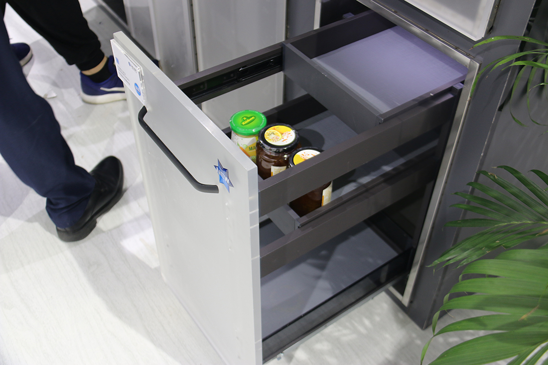 接下來就是星徽廚房功能五金系列。像全新鋁框拉籃系列——三邊抽中抽,分隔大小自由調(diào)節(jié),以及新款鋁框抽中抽調(diào)味籃,在分隔大小自由調(diào)節(jié)的基礎(chǔ)之上,產(chǎn)品升級(jí)為多層抽納設(shè)計(jì),將有限的空間無限化,讓你的廚房像一個(gè)聚寶盆但又不失時(shí)尚感、科技感。