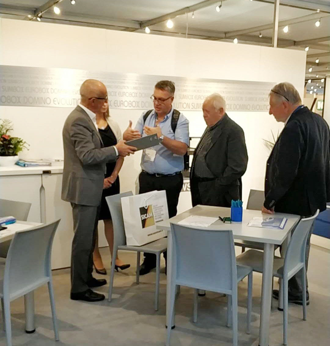 2018年10月16日,為期4天的意大利SICAM 秋季家具材料展會(huì)在威尼斯的博德諾內(nèi)召開(kāi),星徽子公司意大利DONATI以一系列歐洲先進(jìn)技術(shù)的產(chǎn)品線精彩亮相。展位以簡(jiǎn)潔的白色搭配銀色點(diǎn)綴,整個(gè)展位時(shí)尚簡(jiǎn)約,注重客戶體驗(yàn)的展廳設(shè)計(jì),讓客戶在每個(gè)不同角落,都可以體驗(yàn)到DONATI創(chuàng)新產(chǎn)品的真實(shí)感受。