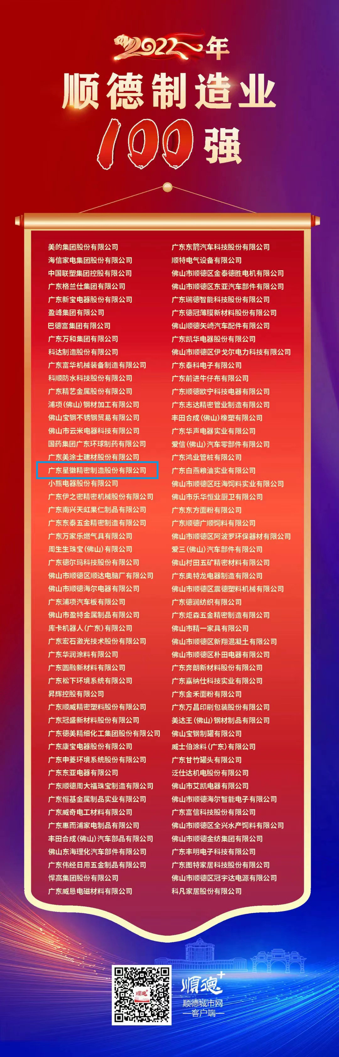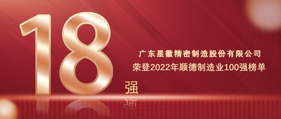 星徽精密榮登2022年順德制造業(yè)百強(qiáng)榜單,奪行業(yè)桂冠