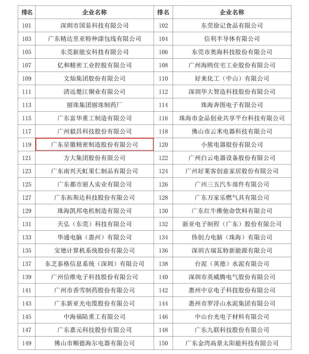 星徽精密 | 榮登廣東省制造業(yè)500強(qiáng)榜單