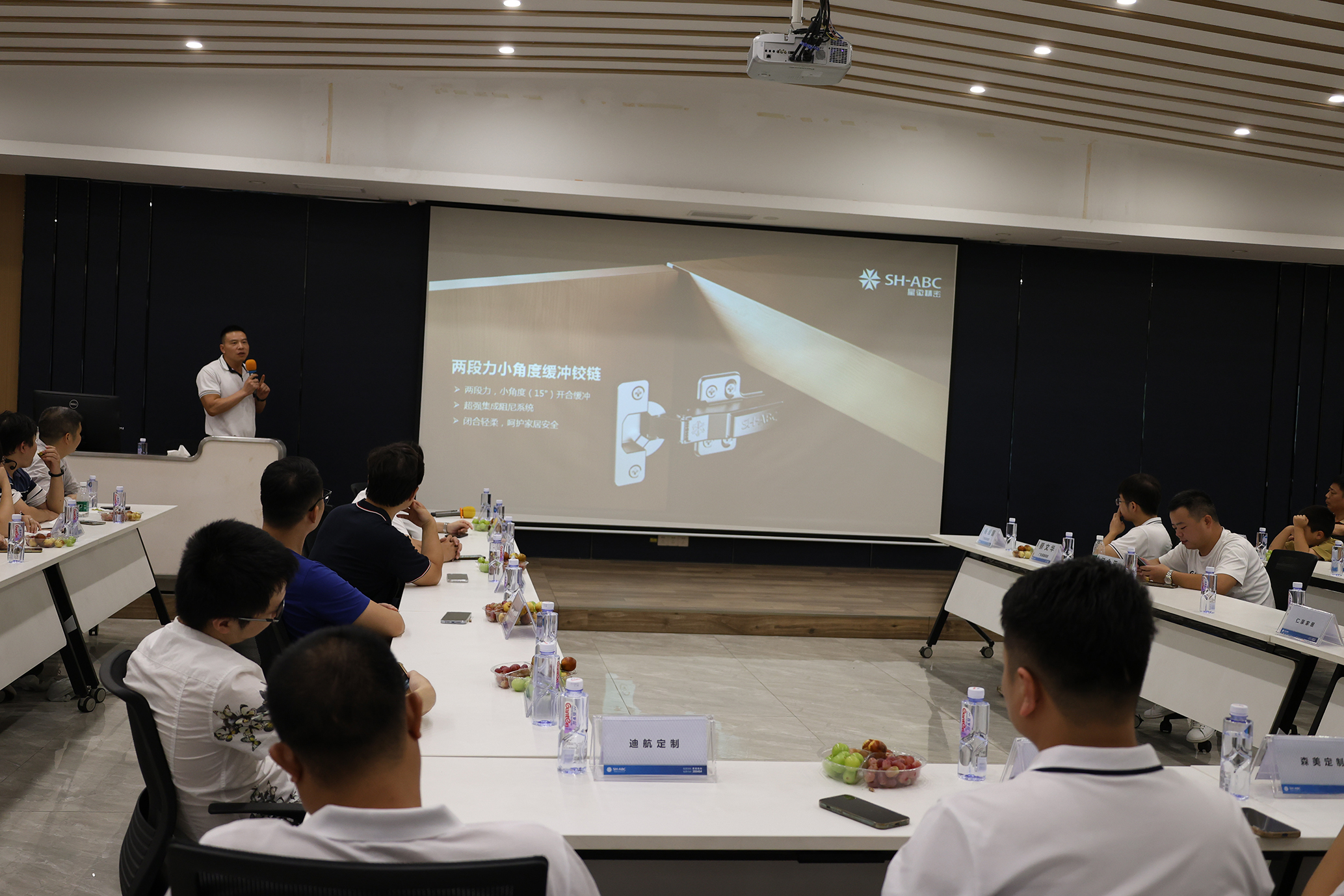 在座談會(huì)上,星徽精密市場(chǎng)部楊維國(guó)首先熱烈歡迎惠州家具行業(yè)協(xié)會(huì)成員一行的到來,并對(duì)協(xié)會(huì)長(zhǎng)期以來對(duì)星徽精密的關(guān)懷和支持表示衷心感謝。隨后分享了燈光騎馬抽屜、上翻系統(tǒng)、兩節(jié)全展隱藏滑軌等星徽精密特色產(chǎn)品及星徽精密未來三年的戰(zhàn)略規(guī)劃。