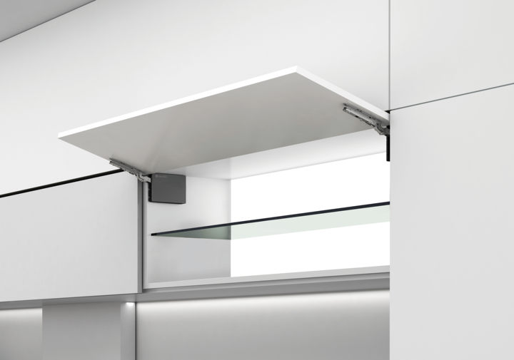 HK上翻支撐門(mén)系統(tǒng)具有雙緩沖功能,門(mén)板打開(kāi)采用精密懸停技術(shù),可將門(mén)體上翻至隨意位置懸停,讓高處物品輕松取放。