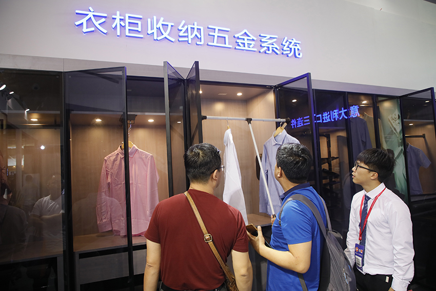 在衣柜收納五金區(qū),用戶切身體驗產品應用在柜體上的效果,貼心的升降桿及轉盤設計,為每一次使用帶來舒適體驗。星徽衣柜收納五金,解決您的各種收納問題,讓生活更精致!