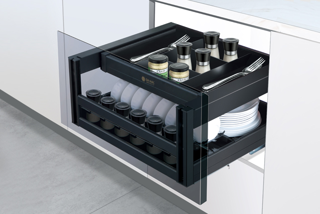 → 設(shè)計(jì):標(biāo)配星徽阻尼滑軌,開合順滑流暢、靜音自動(dòng)回位; 抽中抽多層收納結(jié)構(gòu)提升立體空間使用率,同時(shí)可移動(dòng)式碗碟架,方便清潔衛(wèi)生或靈活使用。